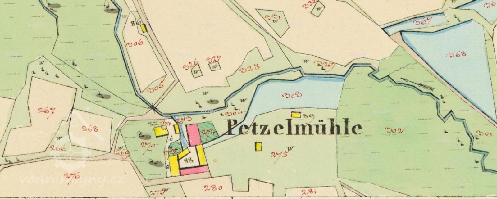 Mlýn s pilou uveden v Seznamu vodních děl republiky Československé z r. 1930, majitel Jan Poetsch