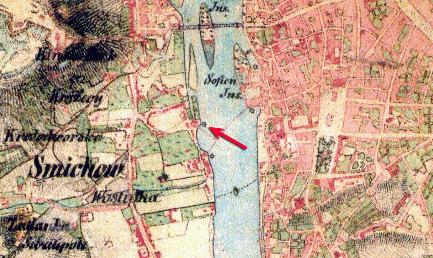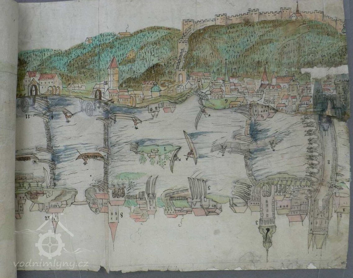 1483 – pražská obec povolila mlynáři a pekaři Janu Petržílkovi postavit při Jezuitském ostrově (dnes Petržilkovský) na Vltavě u smíchovského břehu „na místě spáleného mlýna mlýn nový“. Vedle mlýna postavila obec dřevěnou vodárnu, která byla umístěna vně hradeb Malé Strany.