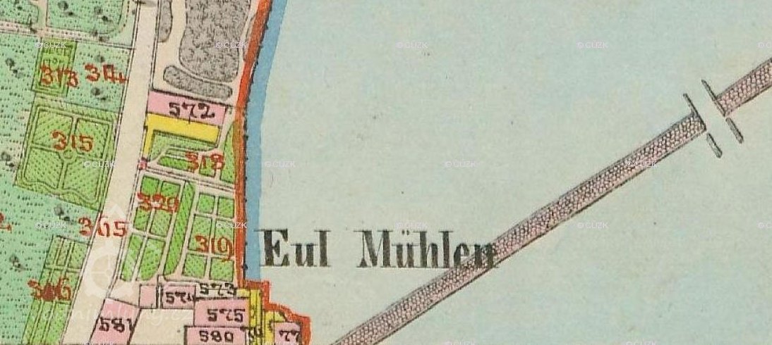 1768 čp. 318 (novou mlýnskou boudu, pilu, domek pro mlynáře, kolnu na prkna, 1/2 svinských chlívků, 1/2 zahrady a dvůr) emfyteuticky zakoupil mlynářský mistr Johann Dick (Jan Dík)