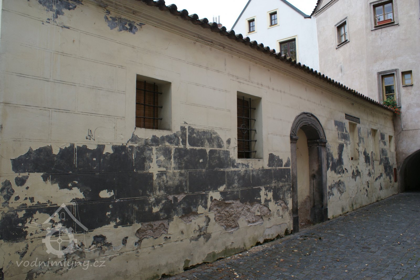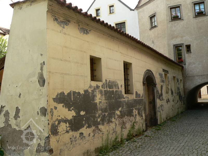 Z původní renesanční stavby císařského mlýna na Městské struze po demolicí v r. 1965 je zachováno torzo severní obvodové zdi přízemí, a to až do výšky profilované kordonové římsy, nad níž je zdivo vodorovně zarovnáno a překryto prejzy. Omítky vápenné, okrový nátěr Fasáda obrácená do úzké uličky Pod sklípky je pokryta rytým sgrafitem napodobujícím kvádrovou rustiku. Soklová partie je hladká, kolem oken vyznačeno jednoduché orámování. Průčelí je 6-osé: v 1. a poslední ose jsou drobná čtvercová okénka, ostatní okna jsou výškově obdélná, ve 3. ose zaslepený vstup s pískovcovým portálem. Vlevo od portálu mají okna renesanční kované provlékané mříže (vetší okno s kroužkem uprostřed), vpravo od portálu jsou okna zaslepena ve špaletě. Portál se segmentovým nadpražím má hladké stojky s kubickými patkami a 3x odstupněnými římsovými hlavicemi. V nadpraží je lemován lištou a po celé ploše opatřen kartuší se stlačenými okraji, jež nese nápis " MLEYN TENTO WYSTAWEL WILYM WEGWODA Z PERNSSTEINA 1515. ROZDELIL SYN GEHO WOGTECH 1531 / CISAR RUDOLF II PRESTAWEL 1596 A MLINAR ANTONIN BUBENIK ZASE SPOGIL Y OPRAWIL 1811//". Nad oknem vpravo od portálu zazděno přímé nadpraží s lištou nahoře a obdobnou kartuší, jejíž nápis zní: „RVDOLPHVS II DEI GRACIA ELECT. ROMANORVM IMPERA/TOR VNGARIE BOHEMIAE .. REX ANNO 1.5.9.6.//“