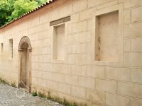 Na rubové straně zdi zachovány segmentově zaklenuté okenní výklenky a výčnělek po odbořeném klenebním pasu