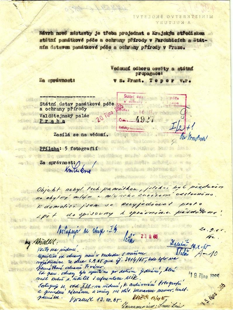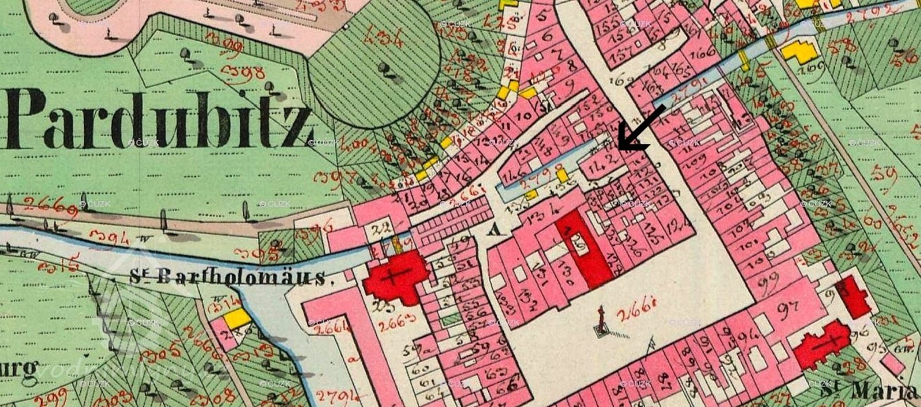 V roce 1531 postoupil Vojtěch z Pernštejna městu Pardubice jedno sladové kolo z panského mlýna. Na základě tohoto kroku nechali městští konšelé probourat zeď sousedního objektu a v takto získaném obecním mlýně čp. 13 postavili mlýnské kolo s kamenem a později i dvě kroupové stoupy.( RR).