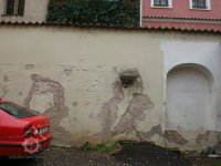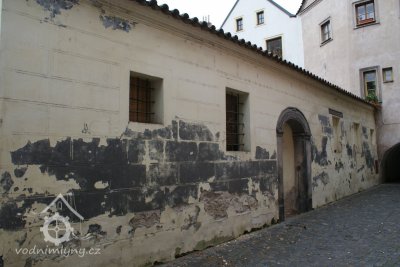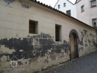 Boční průčelí budovy se zachovanými částmi renesančních sgrafit a nápisů, vnitřní disposice zachována v pův. vertikálním a horizontálním členění, konstrukce stropů dřevěná, trámová v původním rozvrhu.