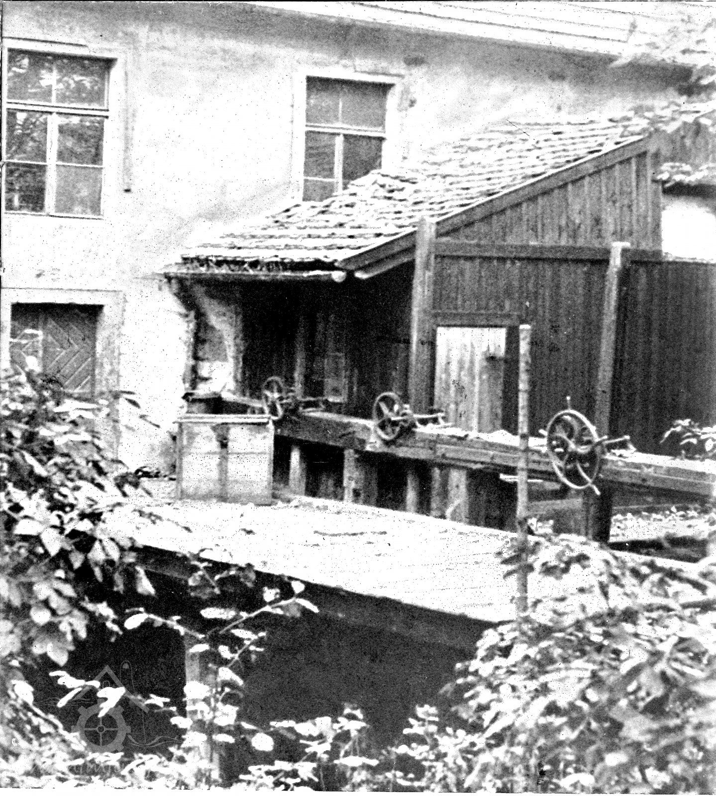 Pohled na mlýn čp. 449 a sousední dům čp. 450, 1920, © J. Brunner-Dvořák
