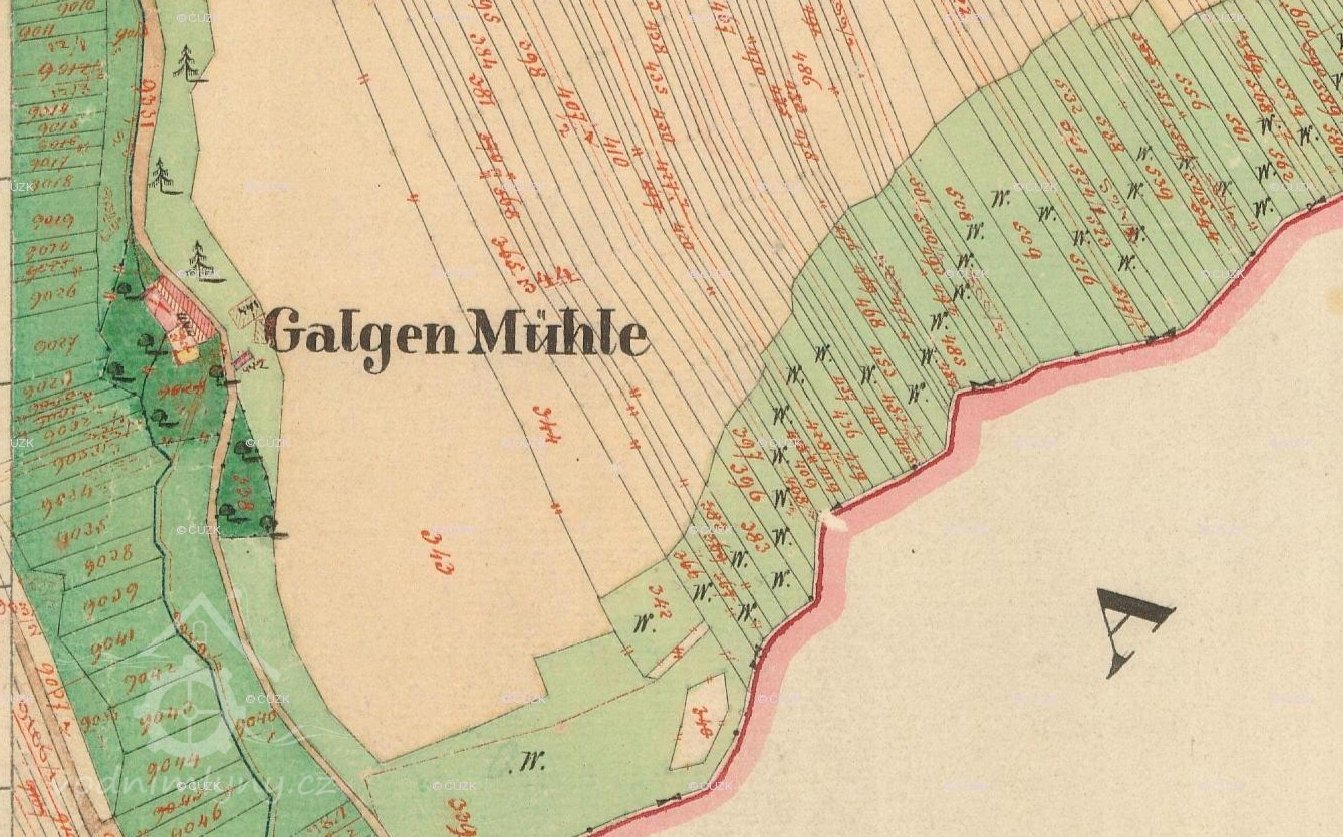Název Galgenmühle odvozen podle vrchu Šibeník, na kterém stávalo popraviště se šibenicí.