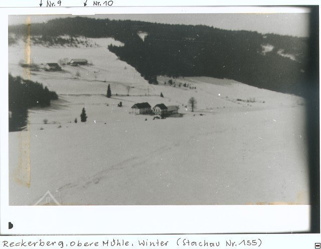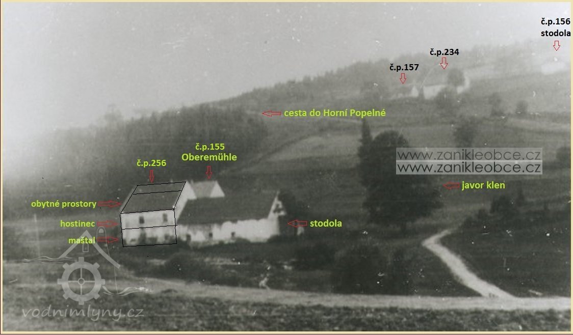 Někdy mezi roky 1837 a 1876 v místě proběhly výrazné stavební změny.Přestavbou mlýnské budovy se její severozápadní štít prodloužil.Jelikož při tomto štítu bylo umístěné vodní kolo,byl i náhon mezi pilou a mlýnem trochu odchýlen sz od trasy svého dřívějšího toku.Zároveň byl v letech přestavby také zbořen dřívější obytný a hospodářský objekt půdorysu L (zakreslený ve stab.kat.1837-viz fotogalerie/sekce "Ostatní") a vystavěn o několik metrů dále sz rovnoběžně s mlýnem obytný objekt čp.256 s hospodářskou částí.Mezi těmito budovami procházela cesta přes malý mostek,jelikož cestu zde křížil mlýnský odtok.Za novější budovou zatočila vlevo na mostek přes Losenici,za kterým pak pokačovala kolem dvou domů patřícím ke mlýnu a dále stoupala loukami k dalším reckerbergským selským usedlostem.Novější stavení čp.256 mělo svou vyšší a nižší část.Vyšší část zahrnovala maštal,v patře nad ní byl zřízen hostinec "U Obřího hradu" a nad ním obytné prostory.Nižší část sloužila jako stodola.Mlýnský náhon,který je zhruba 400 metrů dlouhý a dosud po celé své délce v terénu znatelný,poháněl i pilu kousek nad mlýnem.Tok náhonu byl specifický tím,že od mlýna (již jako odtokový kanál) protékal klenbou pod vedlejší budovou.Toto místo bylo jedním z klukovských prolézaček.Mlýn rovněž vyráběl el.proud pro potřeby své i vedlejšího domu.Udává se,že ukončil svou mlecí činnost někdy v letech 1910-1915.Poté sloužil jen k výrobě elektřiny.V roce 1959 ještě stála nižší hospodářská část (stodola) objektu čp.256.Jeho vyšší část (s hostincem) i Oberemühle byly již ruinami.Roku 1964 již žádná z budov neexistovala.Nyní lze nalézt jen velmi drobné pozůstatky po někdejším rozlehlém mlýnském stavení -.