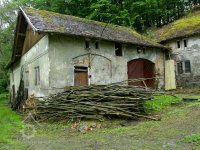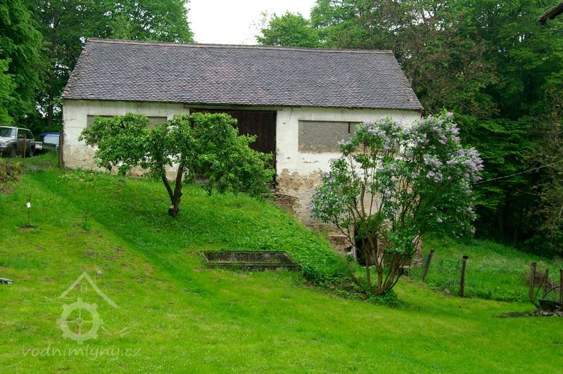 Zděná stodola z r. 1877 stojící samostatně na pozemku mlýna , postavená po požáru starého mlýna, je umístěná ve svahu nad přízemními chlévy.
