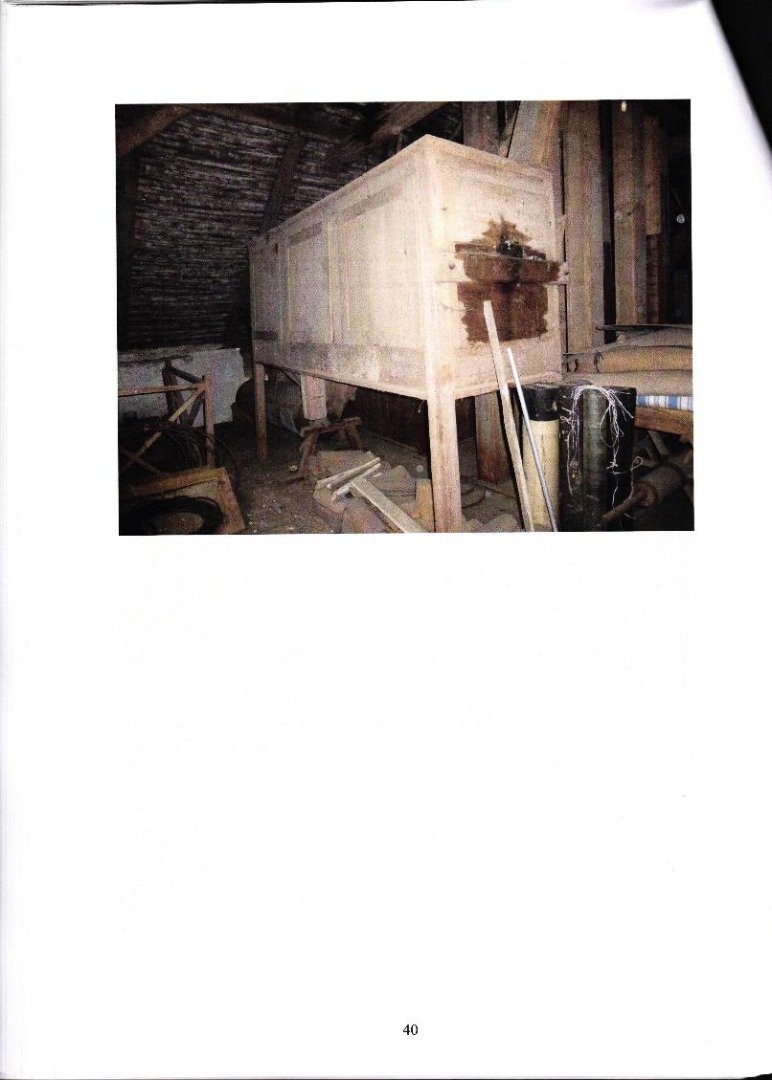 Větší objekt - vozové kolny s chlévy obsahuje na jihu vozovou kolnu s trámovým stropem (přístupnou širokými vraty), úzký skladovací prostor se segmentovou klenbou, chlév zaklenutý segmentovými klenbami do traverz a další prostor vozové kolny s vraty a mlátovou podlahou, v podstřeší se seníkem.
