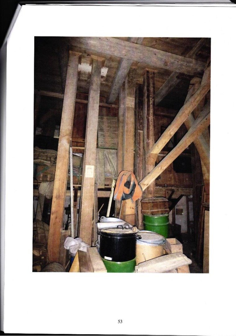 Krov nad obytnou částí je shodně jako nad mlýnicí vaznicový, úsporné konstrukce s šikmými přesahujícími sloupky stolice (varianta Ránkovy konstrukce). Podlaha je dlážděna cihlami.