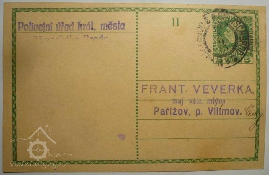 Vodní mlýn je významným hmotným dokladem tradičního technologického způsobu zpracování zemědělských plodin, využívajícího vodní pohon, nesoucí stopy vývoje mlynářského zařízení od konce 19. stol. do pol.20. století.