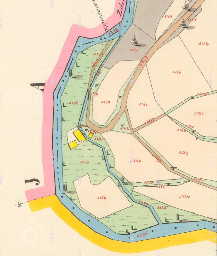 mlýnu přiděleno čp. 103 (od 1804 čp. 1 a od 1808 čp. 140)