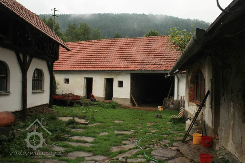 Na mlýnici navazuje v tupém úhlu jednopodlažní SJ orientovaný hospodářský objekt obdélného půdorysu zastřešený sedlovou střechou s dominantní příčně průjezdným vjezdem v jižní části a třemi samostatnými místnostmi (původně chlévy pro vepře) opatřenými vlastním obdélným vstupem a zamřížovaným okenním otvorem v severní části. Lichoběžníkový dvůr uzavírá na SZ straně příčně průjezdná stodola obdélného půdorysu chráněná sedlovou střechou a na ní od V podélně navazující hospodářský objekt (bývalé maštale a stáje pro hovězí dobytek) rovněž obdélného půdorysu krytý sedlovou střechou. Značně přestavěné maštale jsou na delší straně prosvětlené třemi segmentově zakončenými okenními otvory. Všechny budovy jsou vystavěny ze smíšeného zdiva s převahou lomového kamene zejména u starších částí. Jako krytina byla použita keramická drážková taška (výsledek nedávné rekonstrukce), pouze stodola je kryta eternitovými šablonami. Celý hospodářský dvůr je obehnán přibližně dva metry vysokou zdí vystavěnou z lomového kamene a s korunou vyskládanou z tašek. Celý areál ze Z zpřístupňuje brána s obdélnými dvoukřídlými vraty.