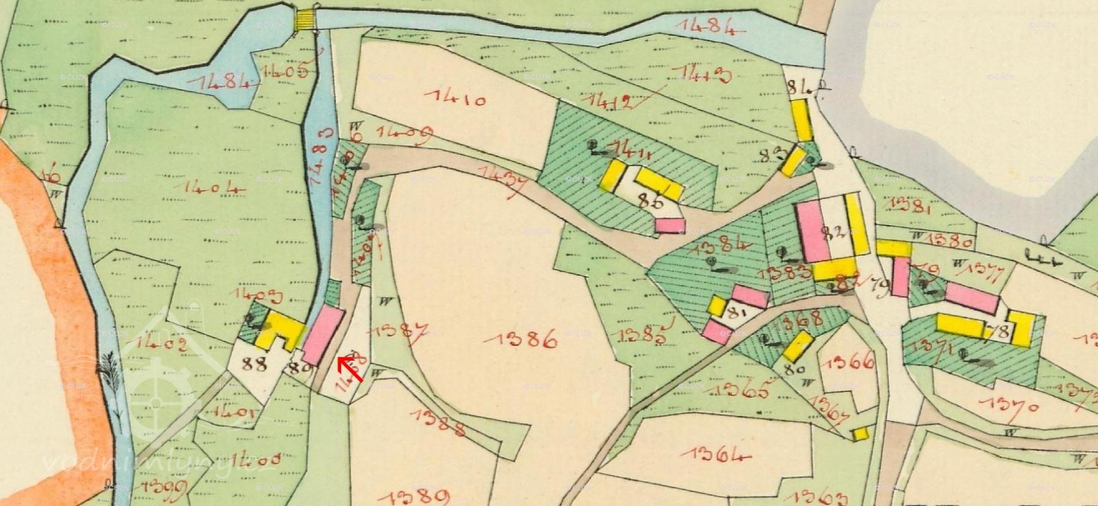 Popis1930: 1 kolo na svrchní vodu, hltnost 0,189 m3/s, spád 4,58 m, výkon 7,48 HP