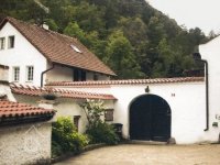 Mezi hlavním objektem a hospodářským stavením je zeď prolomena vjezdem s půlkruhovým záklenkem a pravoúhlou brankou. Na protilehlé straně dvora v ohradní zdi je též branka s oválným záklenkem.