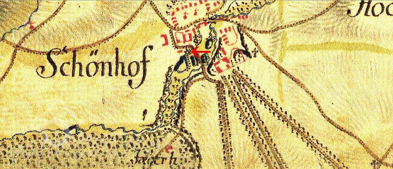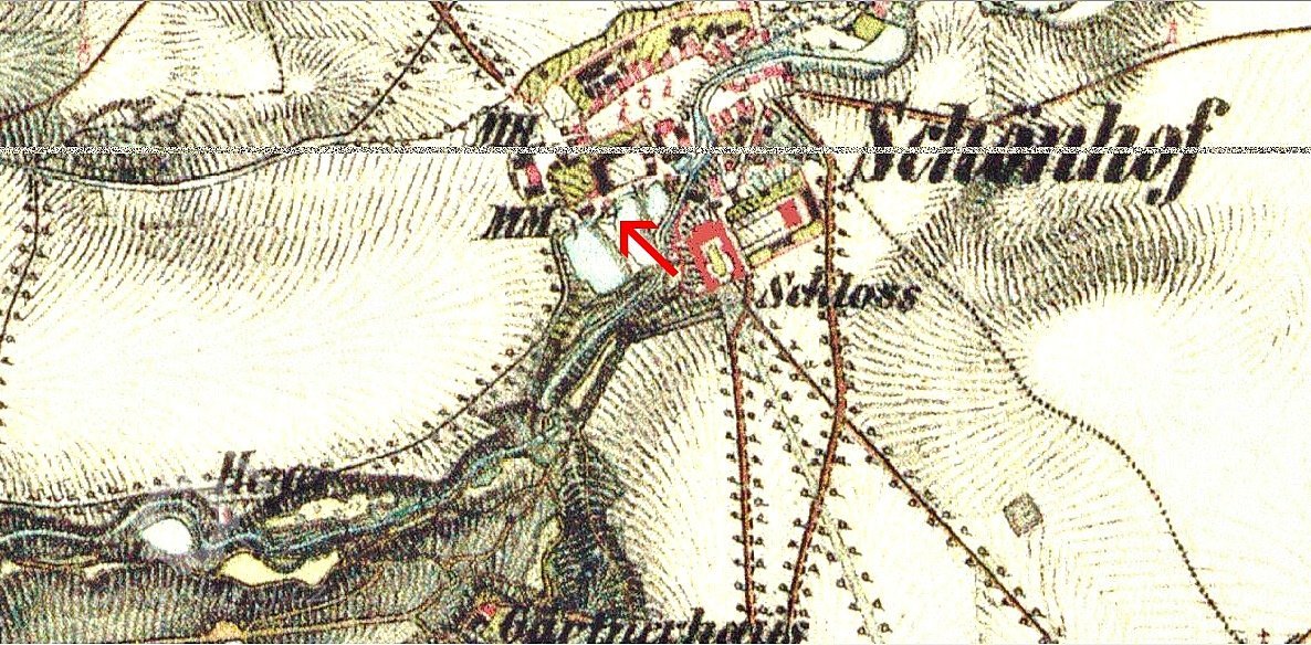 Mlýn se nacházel cca 180 m severozápadně od zámku.
