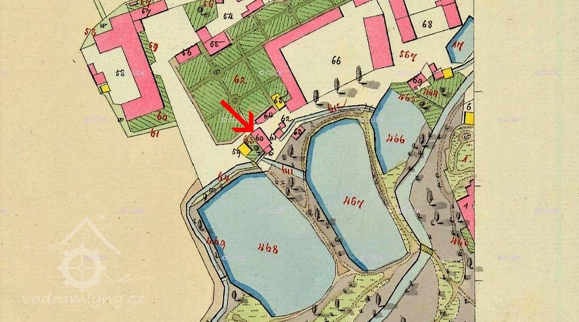 Mlýn měl jalovou strouhu, která vracela vodu do druhého rybníka a odtokový kanál, který napájel třetí rybník s dalším vodním dílem. (PŠ)