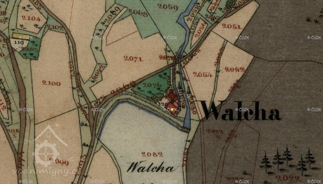 K roku 1947 byl již mlýn Valcha zcela opuštěný a zničený. (ŠJ)