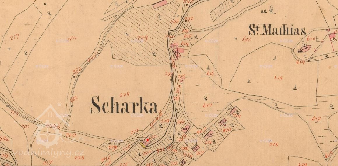 Jakožto jest na onen čas slavné paměti pan Vilém z Rožmberka, nejvyšší purkrabí pražský, na gruntech nejvyššího purkrabství v Šárkách, pod kostelem sv. Matěje, vedle cesty vozové, jedouce od sv. Matěje k Horoměřicům, z jedné a vedle potoka z druhé strany mlejn postaviti dovolil, kterýžto nadepsaný mlejn Petr Vidtman, mlynář, koupivše jej, dostaviti a a potřeby, které k mlejnu náleží, spravit dal, ale nemohouce odnikud jinudy vody na ten mlejn vésti dáti než z potoka, kterýž od gruntů pana opata strahovského, mimo mlejn Dionisiusa Rottenbergra z Děvína, měšťana Starého města pražského, dolů v Šárkách až do Vltavy jde, při mně toho týž Petr Vidtman vyhledával množstvíkráte, abych jemu jako pán těch gruntů přál a dovolil, aby mohl z potoka vody do nového toku až k nadepsanému mlejnu vodu vésti a práh, odkudž by voda na ten mlejn obrácena bejti mohla, vložiti dopoustil. I ačkoli od dávného času pro nebezpečnost starého potoka, který dělí v druhé starně grunty nejvyššího purkrabství, k tomu aby nový tok vody zaražen bejti měl, povoliti na velkém rozmejšlení jsem měl, avšak na přímluvu pana Adama ze Šternberka a na Bechyni, nejvyššího purkrabí pražského ... k tomu aby Petr Vidtman, mlynář, přes ten potok, skrz kterýž vozová cesta jde, na vejš psaném místě, totiž vedle příkopu louky mé z jedné a pod vinicí Václava Posthumia, měšťana Starého Města pražského, z druhé strany vložiti mohl, tak aby voda z tohoto potoka do nového toku na týž mlejn a zase od mlejna do potoka mého starého vcházeti mohla, jsem povolil."