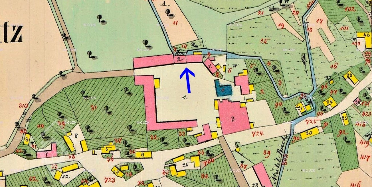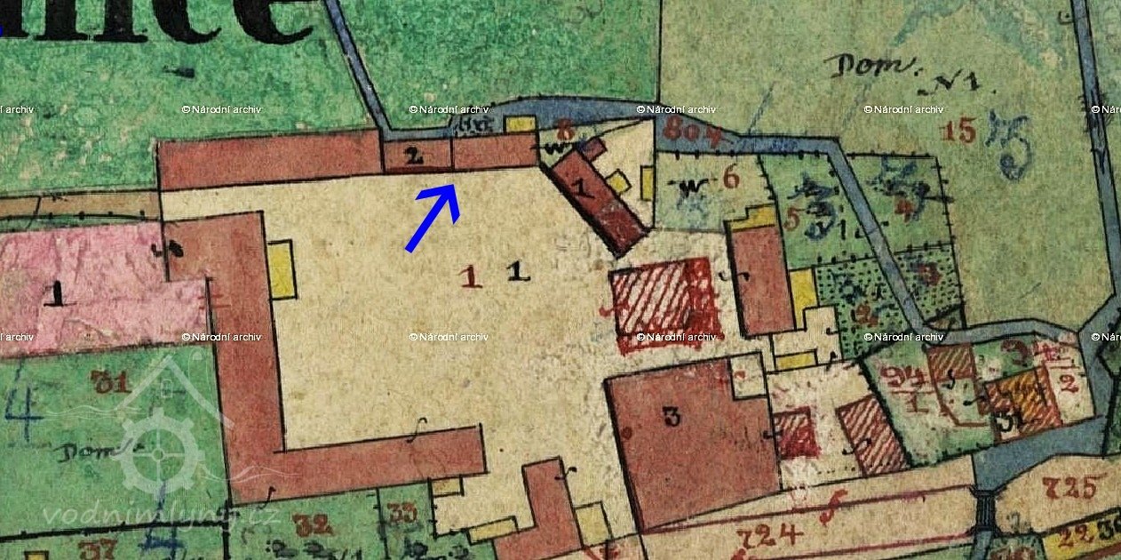 Mlýn se nacházel v pivovaru (čp. 1), který byl v majetku Trauttmansdorffů. (RR)