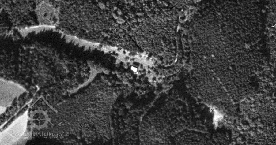 Koncem 19. stol. hájovna (hajní Friess, Blaschka) s pilou. (RR)