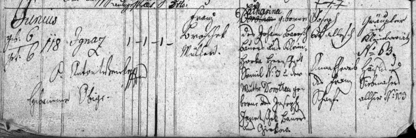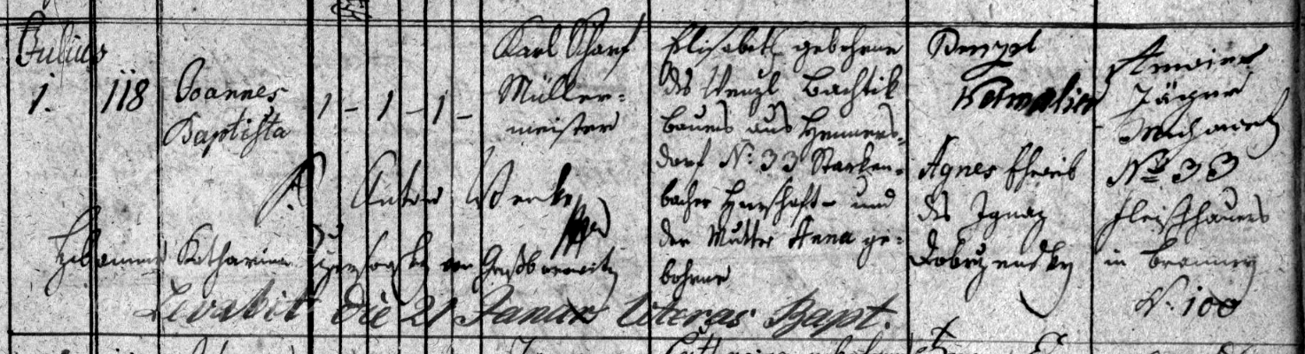 První zápis k tomuto č. p. 118 v matrice je z roku 1787. Není zde ale uváděn mlynář, ale zahradník (Gärtler - domkař s malou výměrou půdy) Christian Portig.