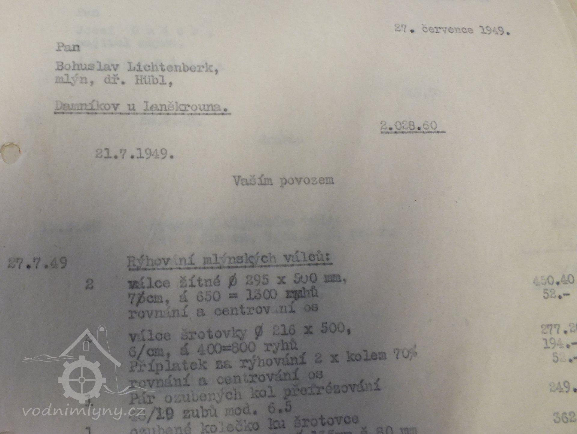 Po válce v roce 1945 se do mlýna nastěhoval mlynář Alois Hainc se svojí rodinou. Mlel obilí do roku 1947. Ten rok se o mlýn zajímal "nějaký" partyzán a obec mu vyhověla. Haincovi dostali náhradní bydlení, avšak brzy se odstěhovali. (informace: Věra Horníková, dcera mlynáře Aloise Haince)