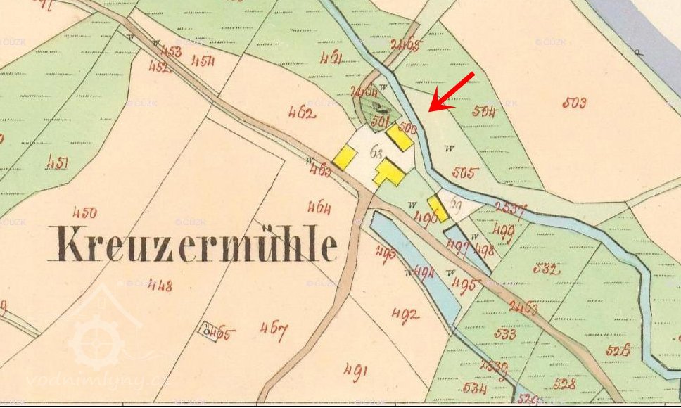 U zříceniny Kreuzerova mlýna se měly ještě v roce 2003 nacházet zbytky kola.