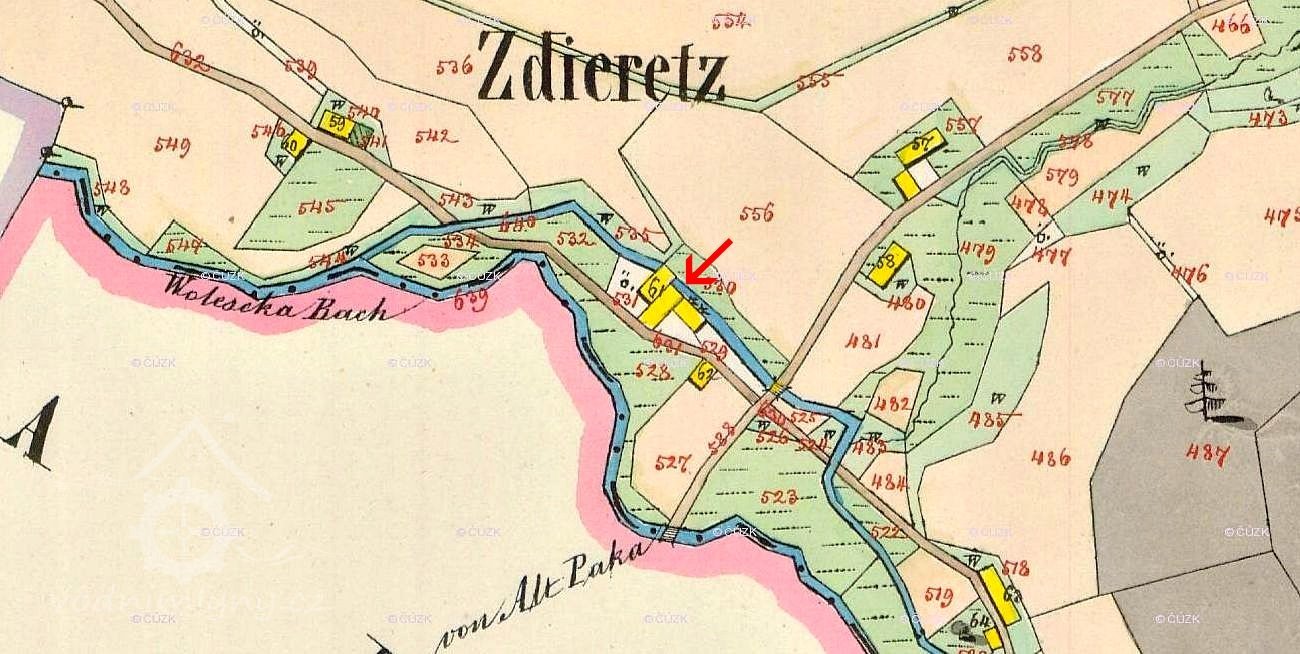 1845 si vzal Jan Tulka, pachtýř tohoto mlýna, Františku, dceru Jos. Mádle