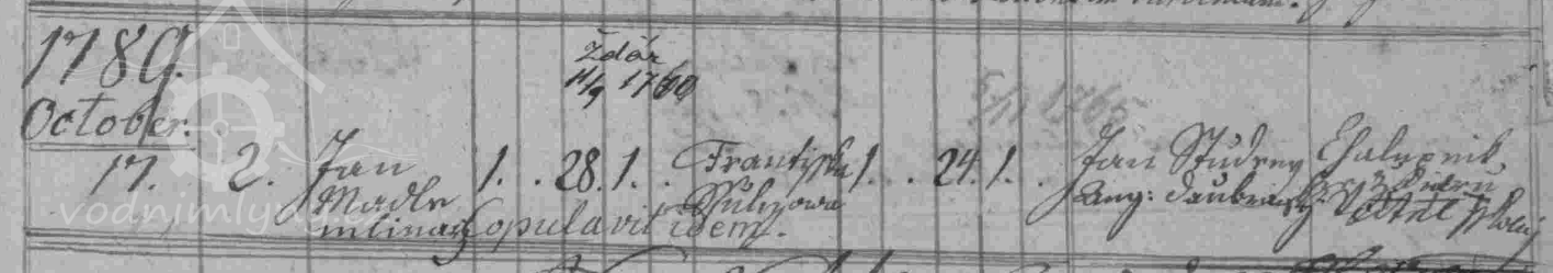 11. 9. 1760 se narodil mlynář Jan Mádle