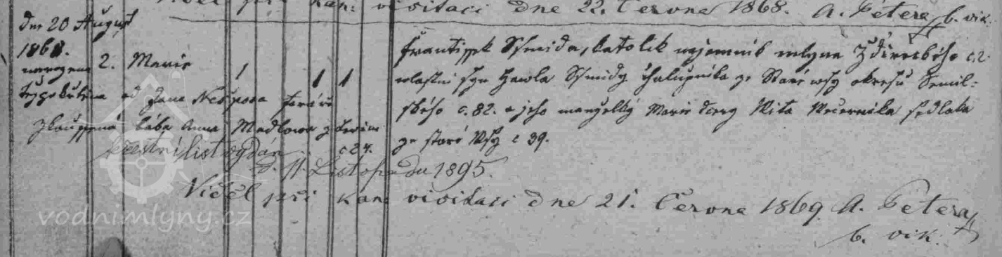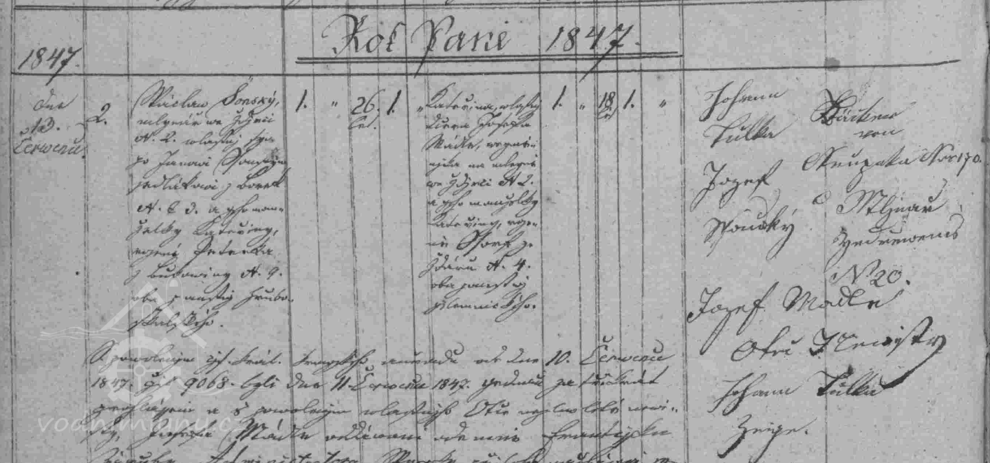 1847 si mlynář Václav Šonský vzal Kateřinu, dceru mlynáře Josefa Mádle