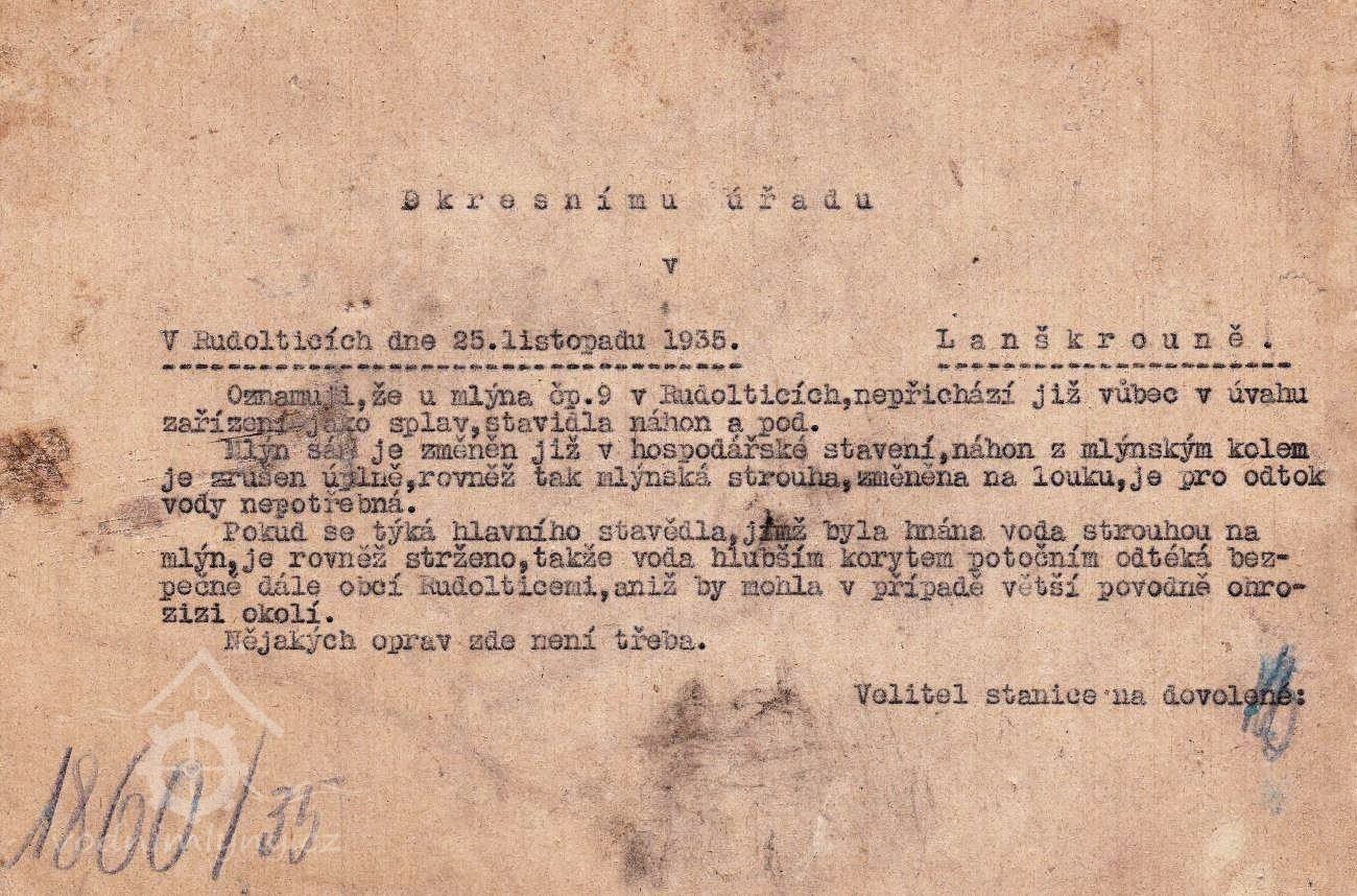 Mlýn byl již před první světovou válkou mimo provoz.
