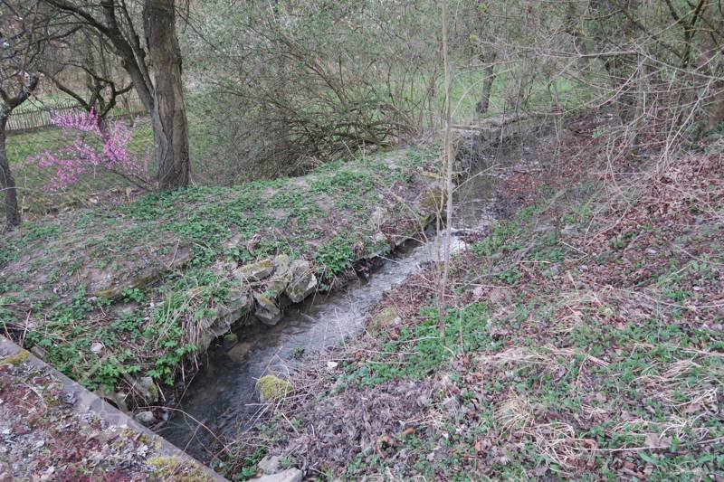 Rybníček, ze kterého vede náhon na mlýn, je napájen oběma potoky.