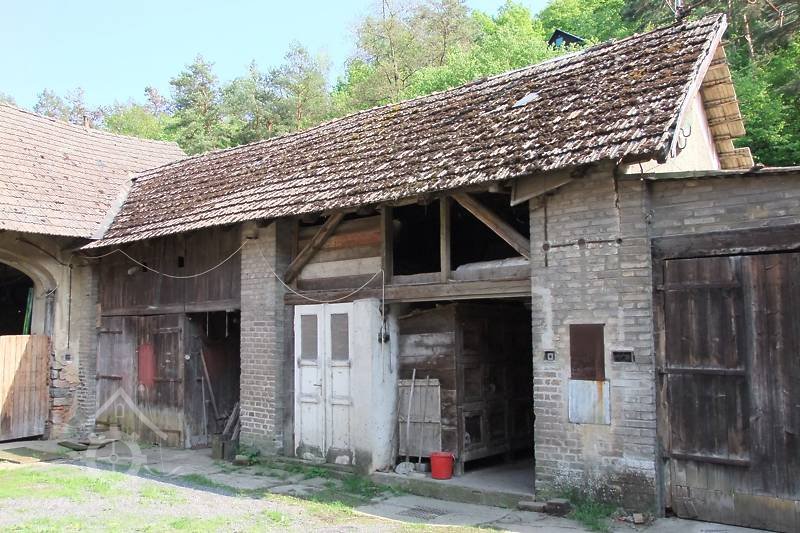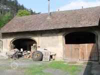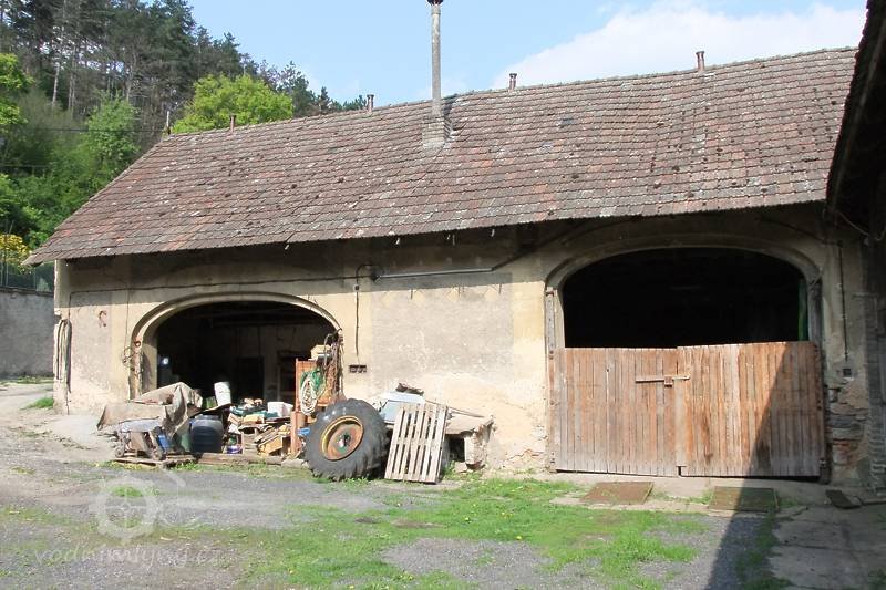 Dvoumlatová stodola z konce 19. stol. na V straně dvora.