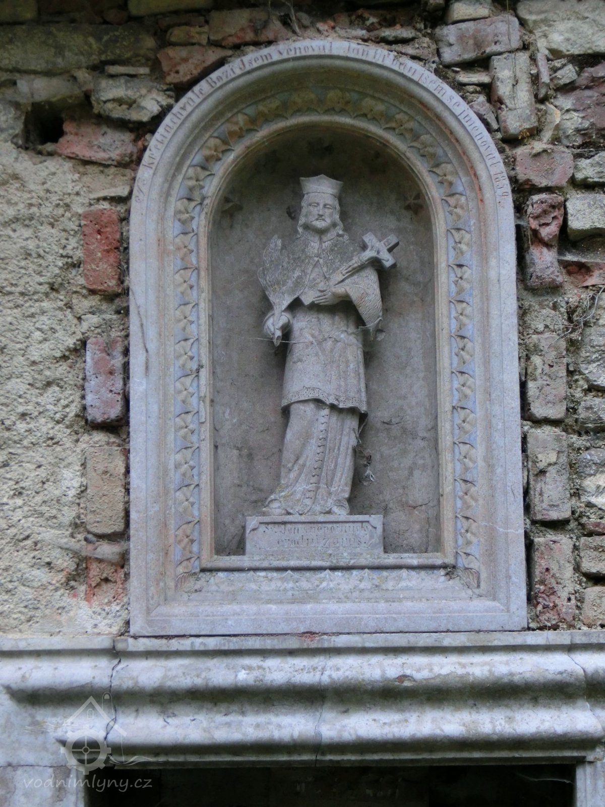 Pozdě barokní údolní mlýn s reliefem sv. Jana Nepomuckého asi posl. čtvrtina 18. stol.; mlýnské zařízení před 20 lety zmodernizováno, nahraženo strojními válci