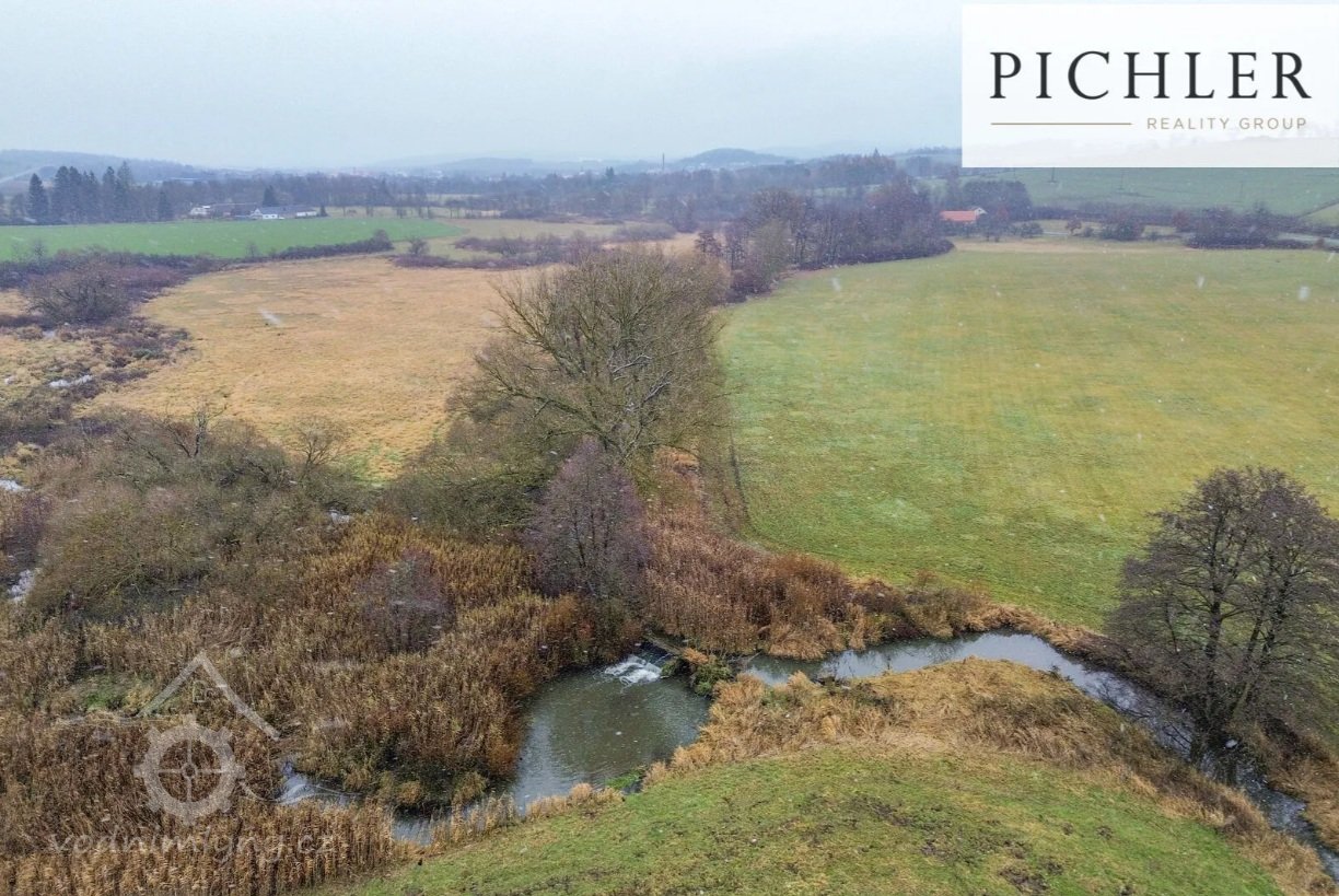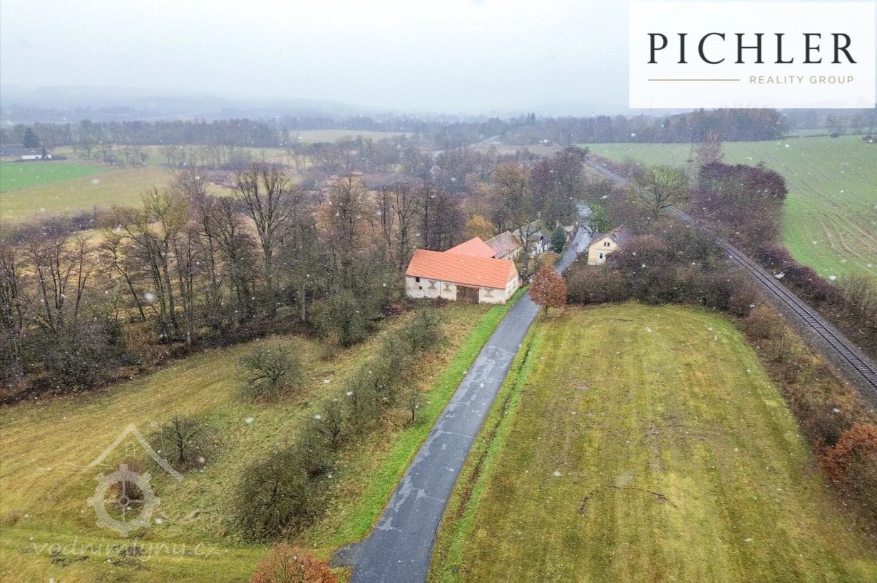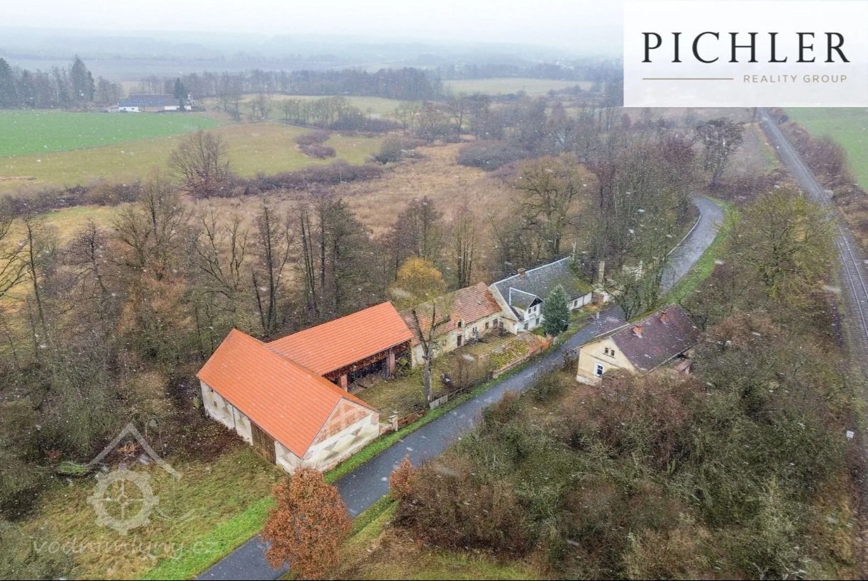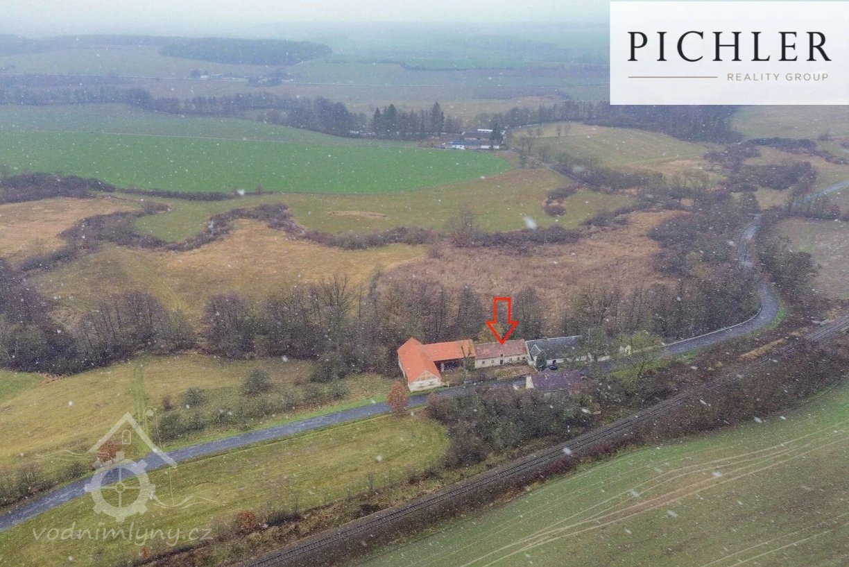 Letecký pohled - jez a začátek náhonu, 11 2025, © Pichler reality group, (Prvky na obrázku: jez, náhon)