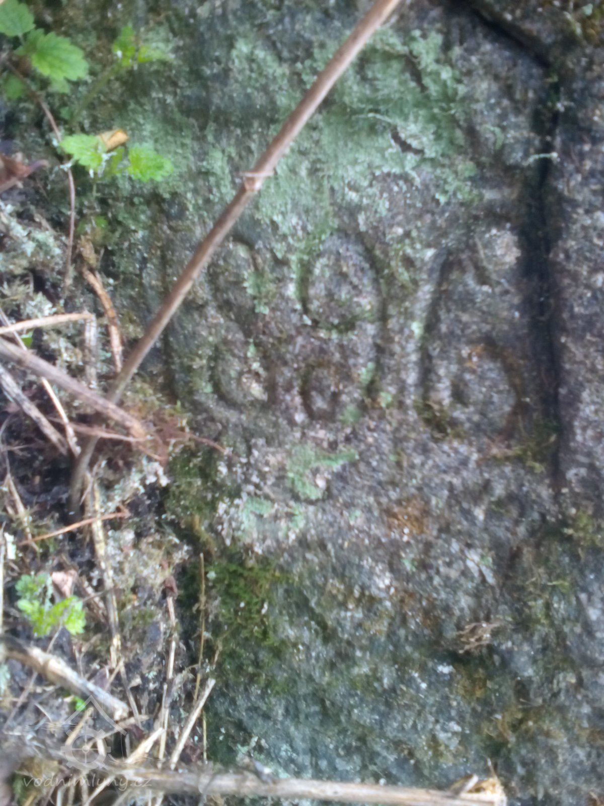 mezní kámen s datací 1812, byl použit též jako vodní znamení, 2015, © Lenka, (Prvky na obrázku: normální znamení)