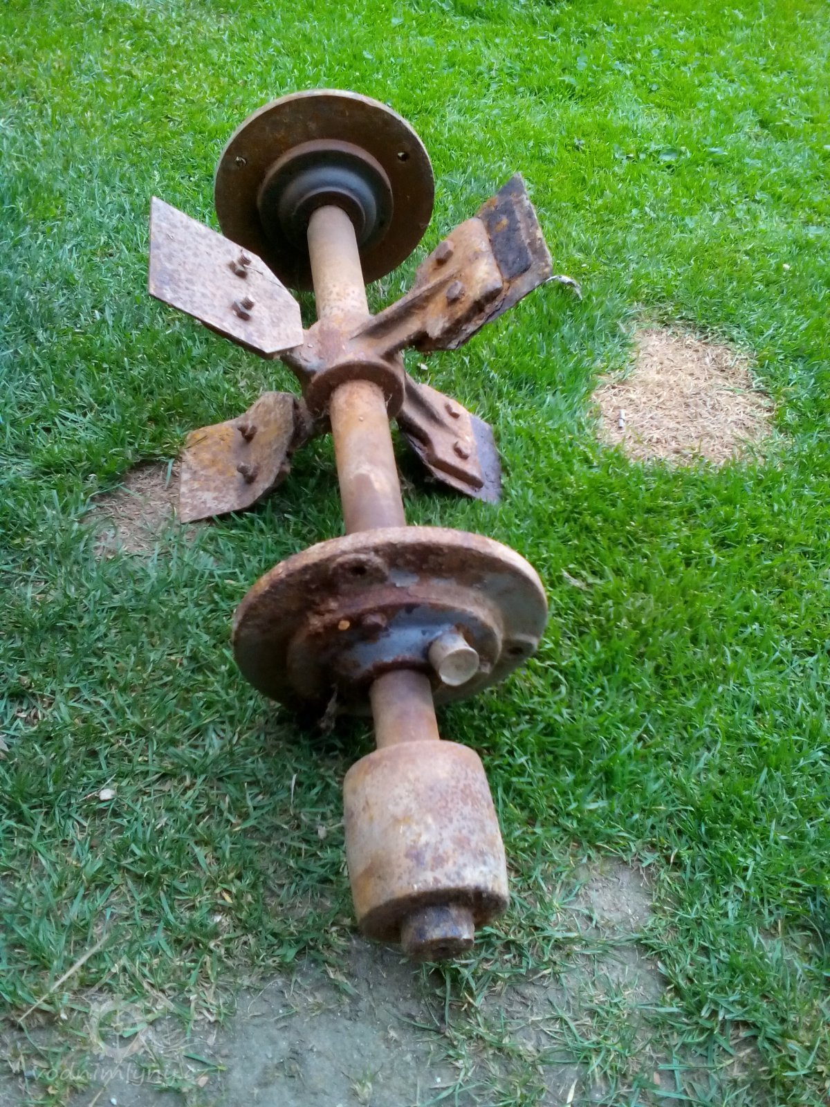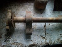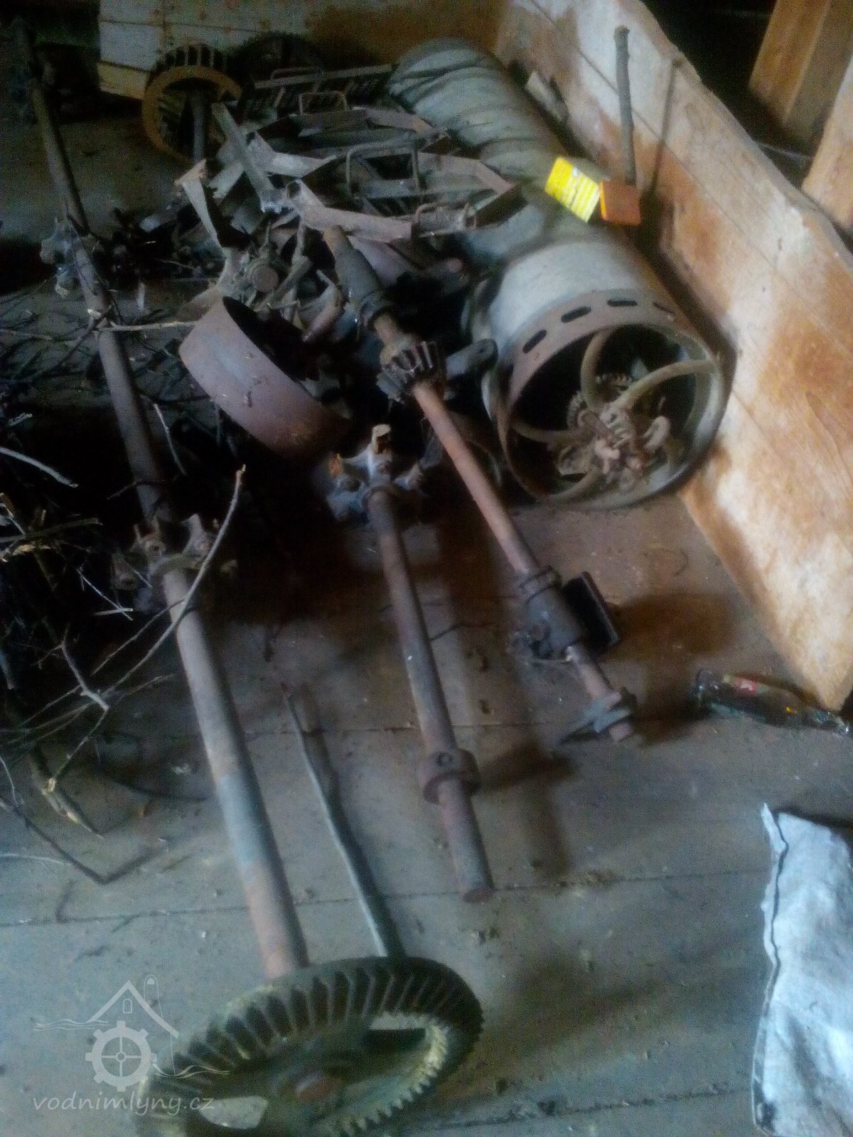 Demontované zbytky zařízení, 2015, © Lenka, (Prvky na obrázku: transmise, řemenice, převody, koukolník)