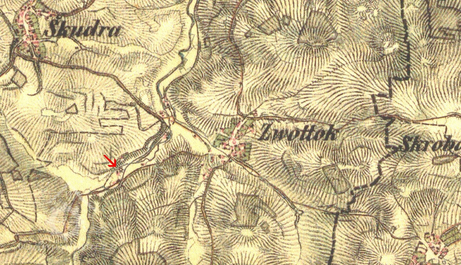 Indikační skica, výřez, 1837, © viz archivnimapy.cuzk.cz