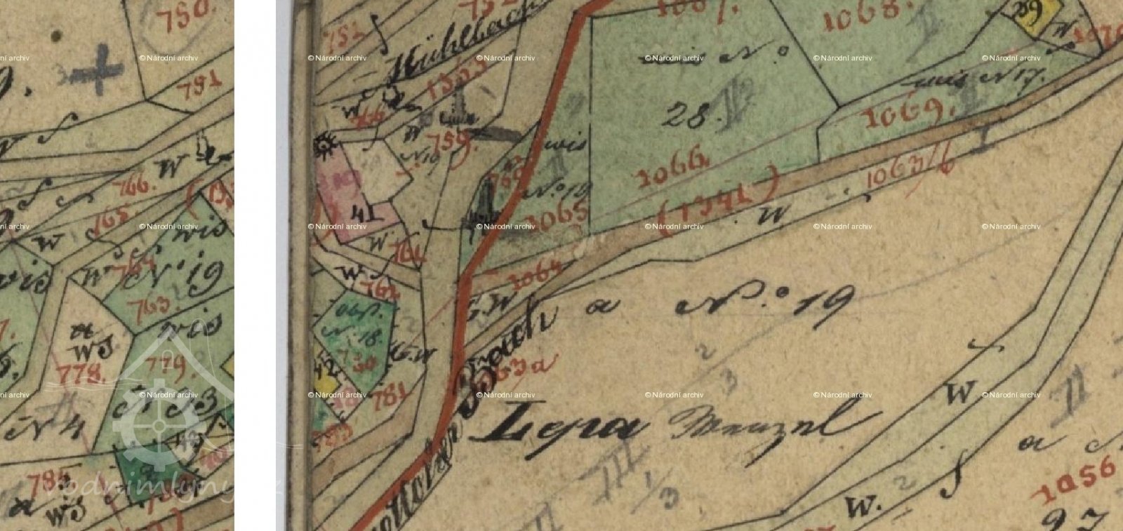 Císařský povinný otisk, výřez, 1824 - 1843, © viz archivnimapy.cuzk.cz