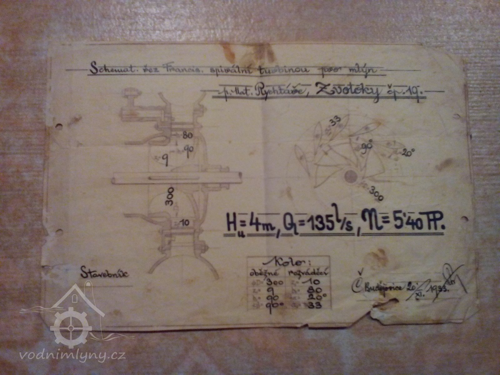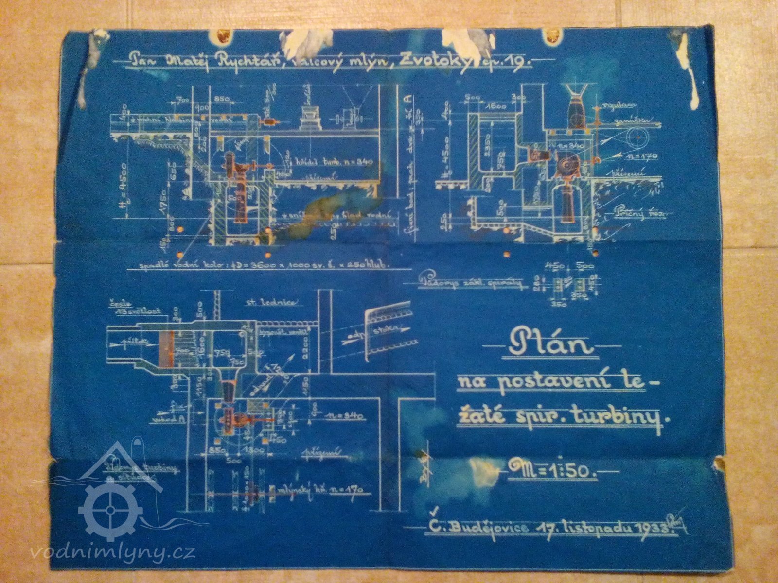 Plán na postavení ležaté spirálové turbíny., 1933, © reprofoto Lenka