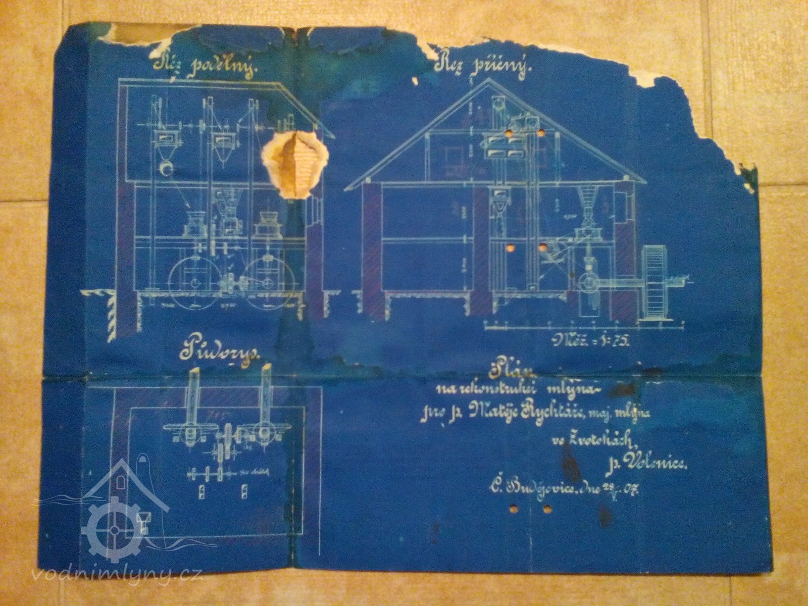 Plán na rekonstrukci mlýna., 1907, © reprofoto Lenka