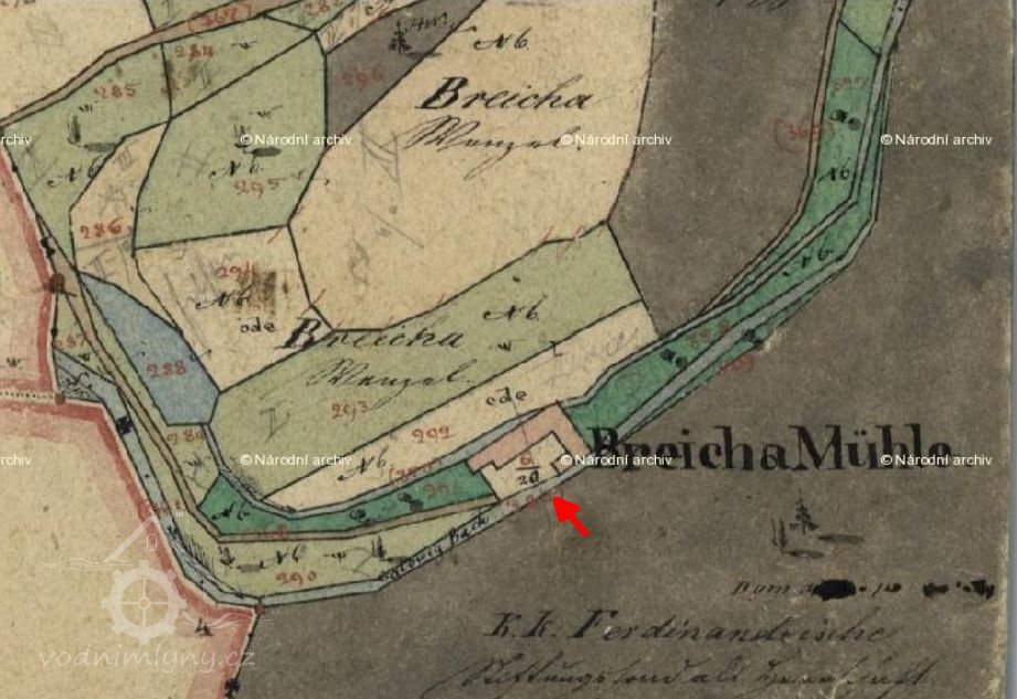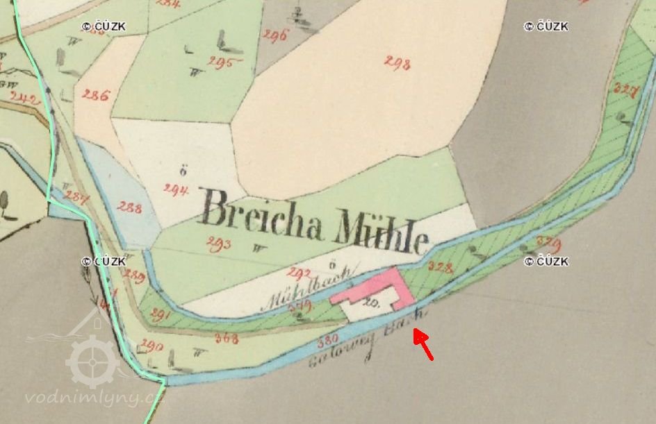 Na Císařských povinných otiscích a Indikační skice je uveden jako Brejchův mlým Breicha M.