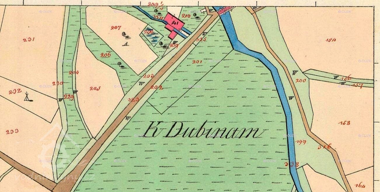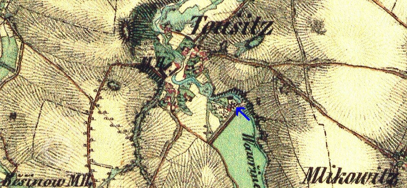 Nejasné je mi řešení pohonu mlýna v době, kdy zde nebyl rybník (1. polovina 19. stol. a znovu ve 20. stol.). V terénu je sice po západním okraji plochy bývalého rybníka dobře patrná jakási strouha, která však spíše vypadá na odvodňovací kanál, než na náhon. Náhon se mi nepodařilo objevit ani v žádné mapě.