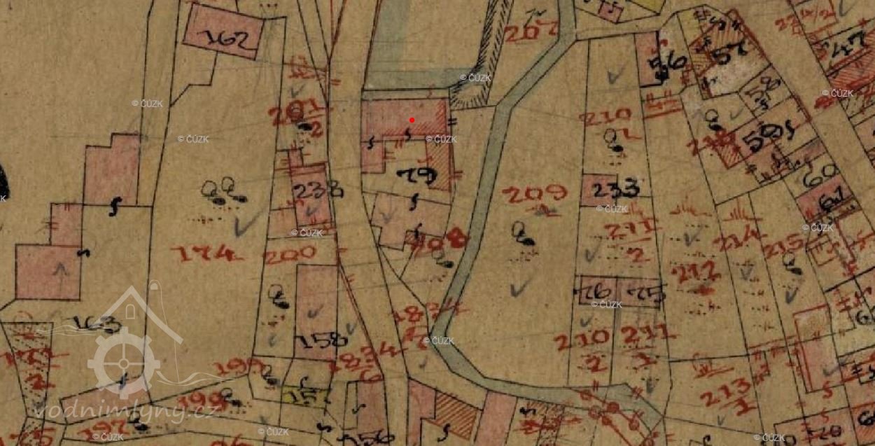 Popis1930: 1 kolo na svrchní vodu, hltnost 0,144 m3/s, spád 5 m, výkon 6,18 HP