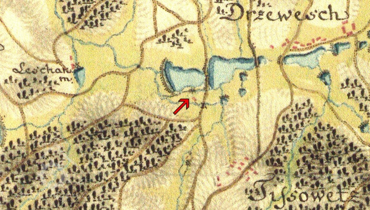 Mlýn stával pod hrází dávno zrušeného rybníka mezi Dřeveší a Tisovcem již před rokem 1750. Jeho dvě mlecí složení poháněla dvě kola na vrchní vodu o průměru 235 cm a šířce 67 cm. Podle tereziánského katastru byla při mlýně také olejna a pila.