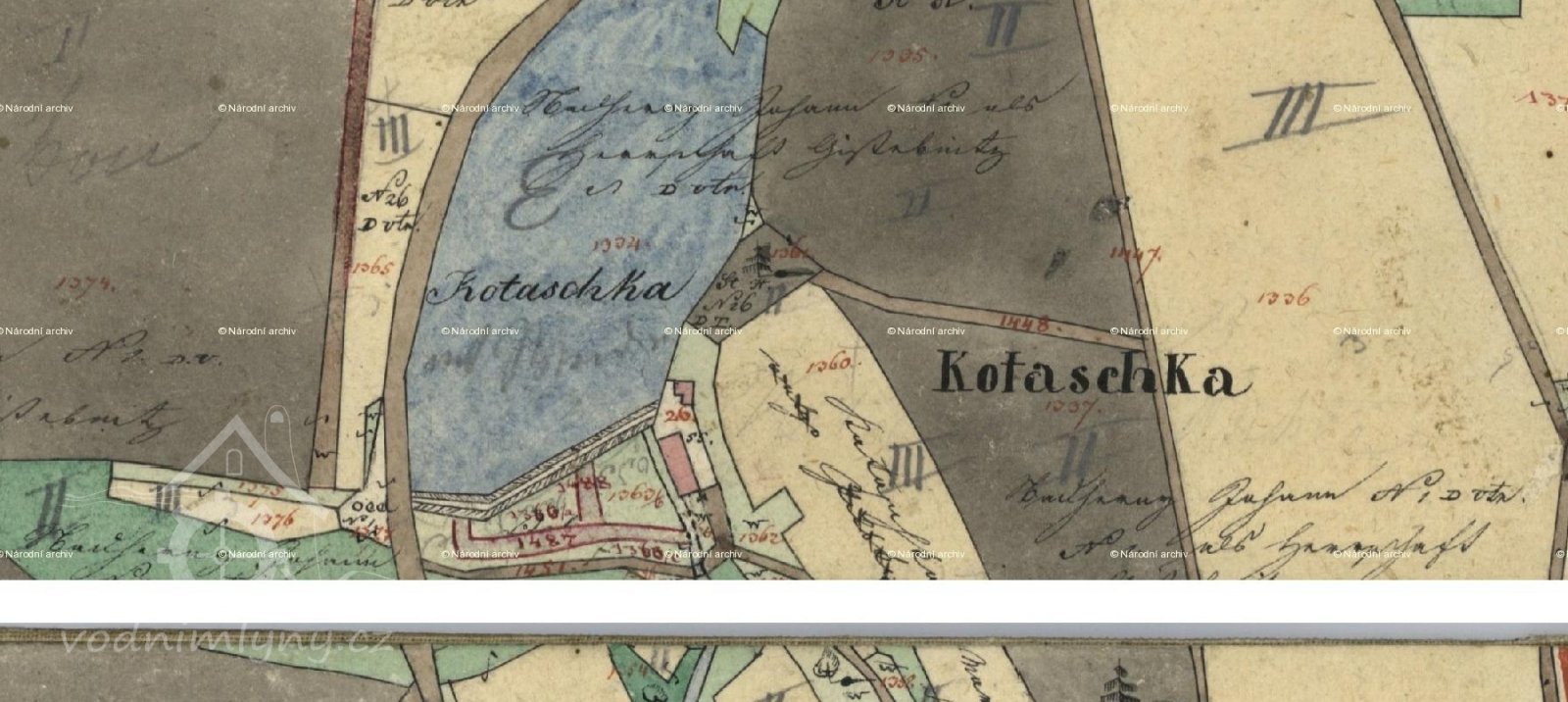 Ve vložce p.č.622 vodní knihy OÚ v Táboře se dochoval pouze výměr ze 17.4.1940 řešící žádost Fr.Kotašky o vodoprávní zjištění a schválení vodního díla. Podle informace žadatele býval na č.p.26 mlýn, který se již 30 let neprovozuje, ale technologie existuje. Vodní kolo na vrchní vodu o průměru 3,30m šíře 0,68m pohánělo české složení. Při správním řízení však pohánělo již jen hospodářské stroje - řezačku a šrotovník.