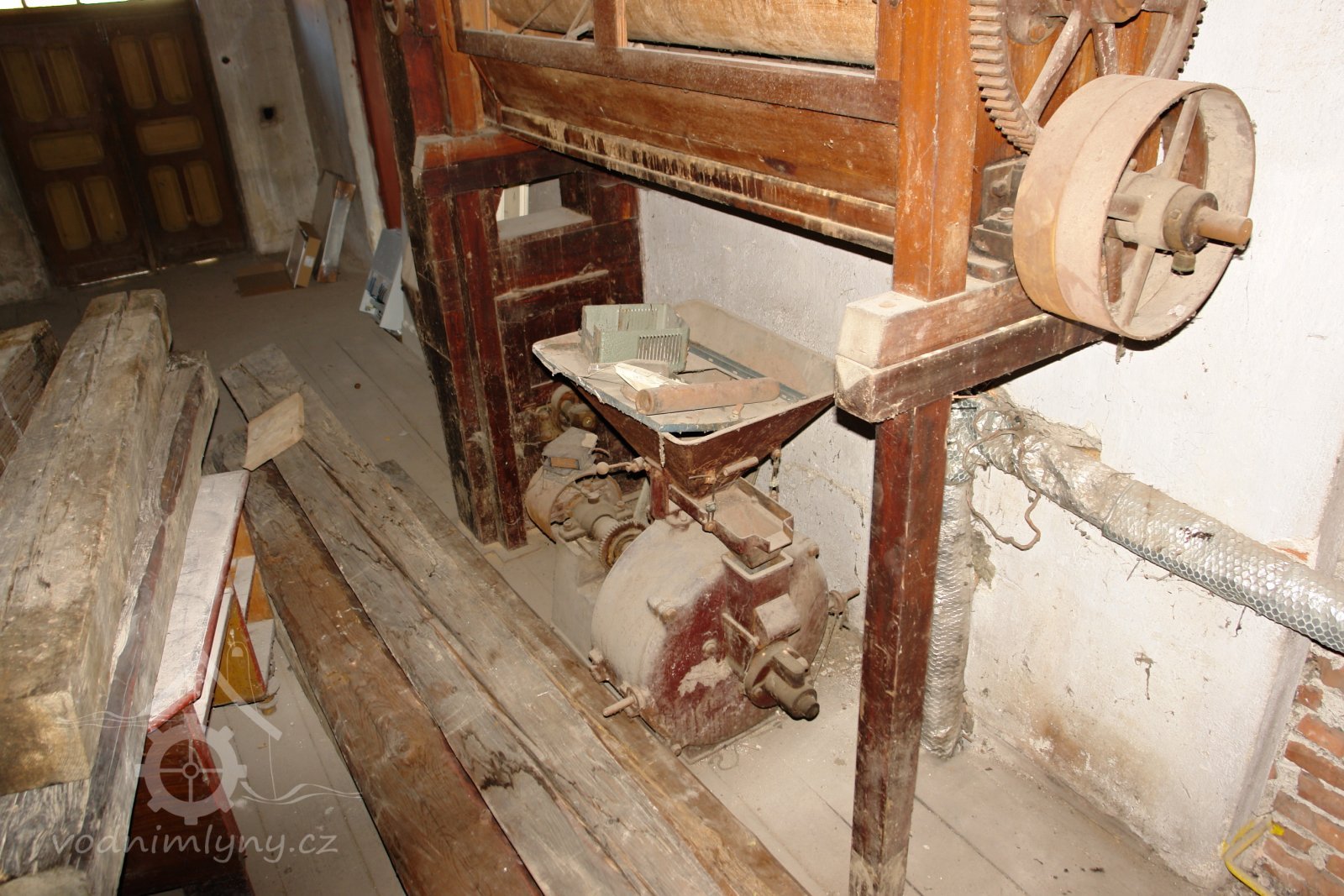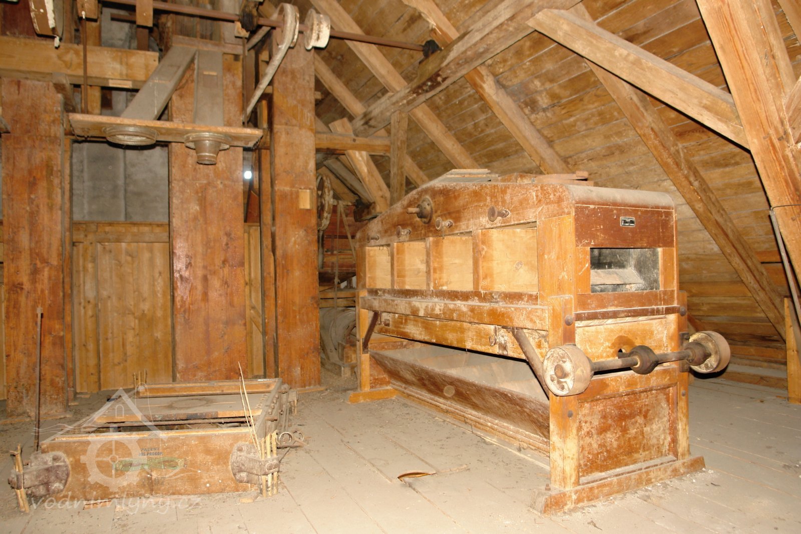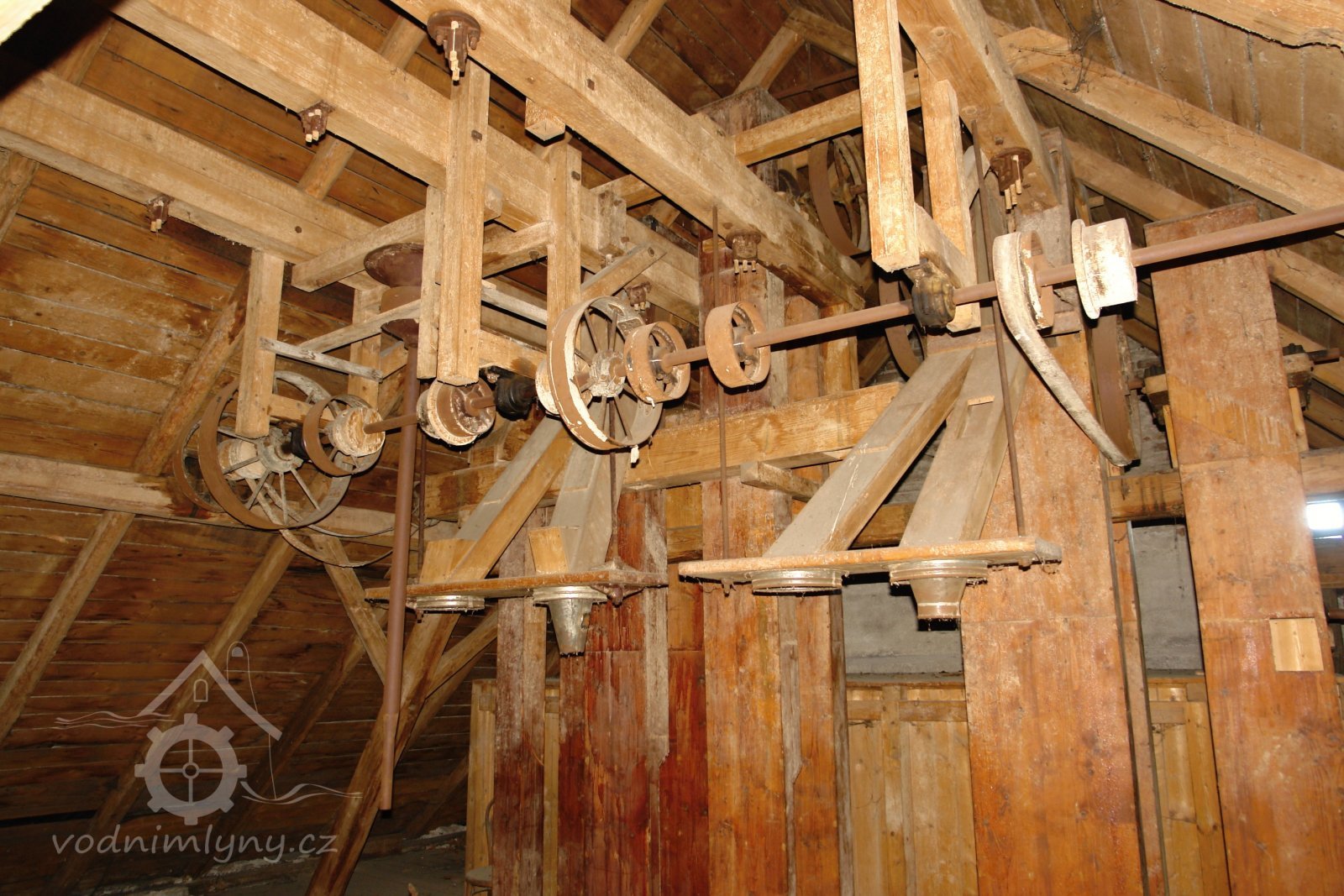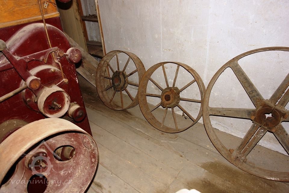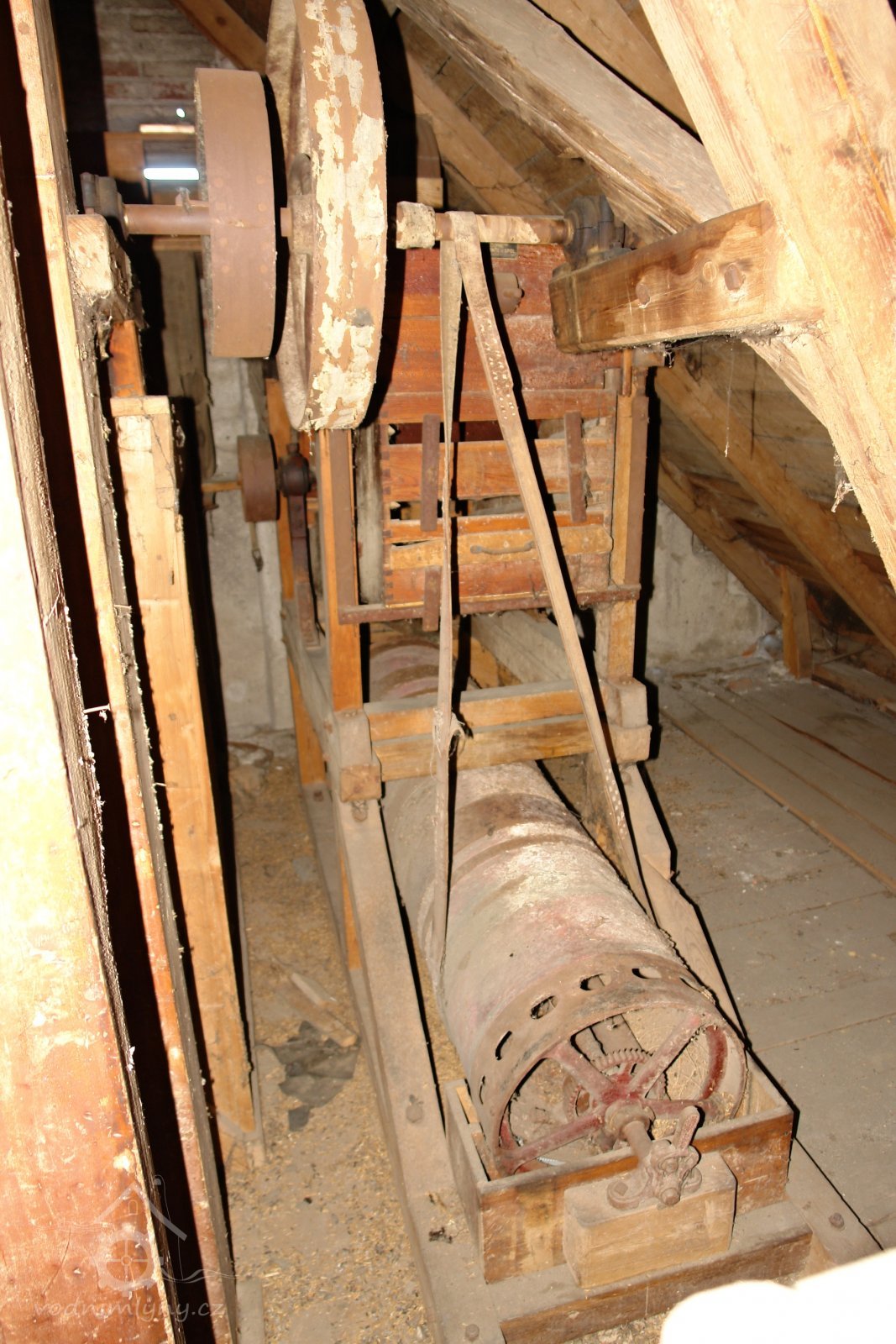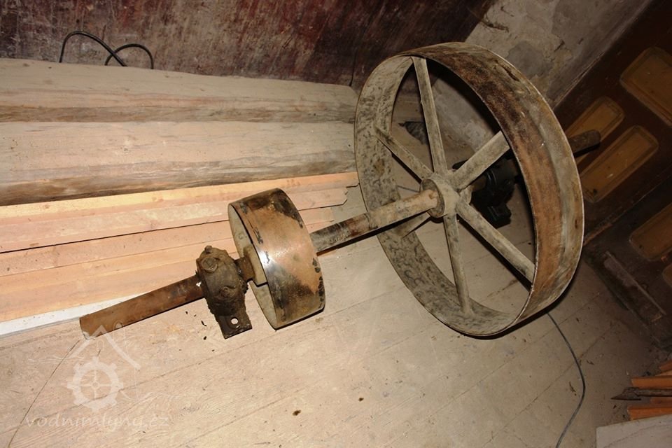 transmise, řemenice, převody v podkroví, 01.10.2015, © Radek, (Prvky na obrázku: transmise, řemenice, převody)