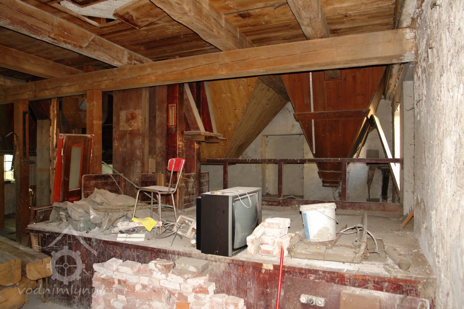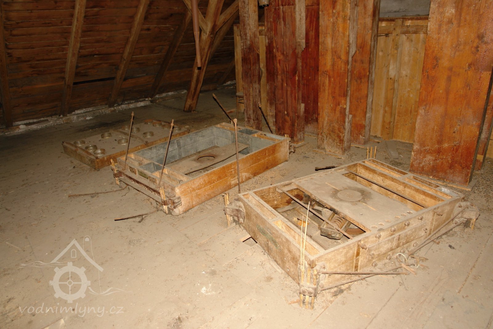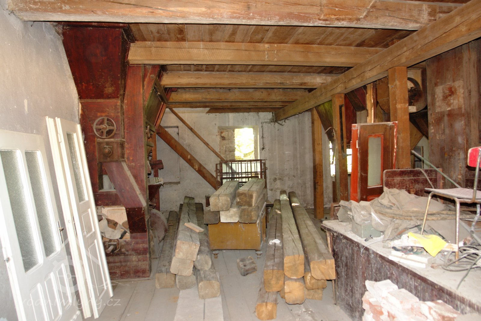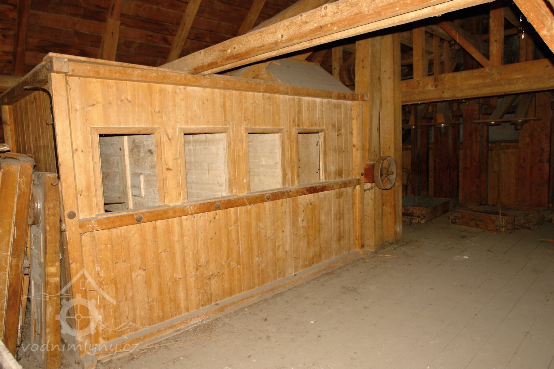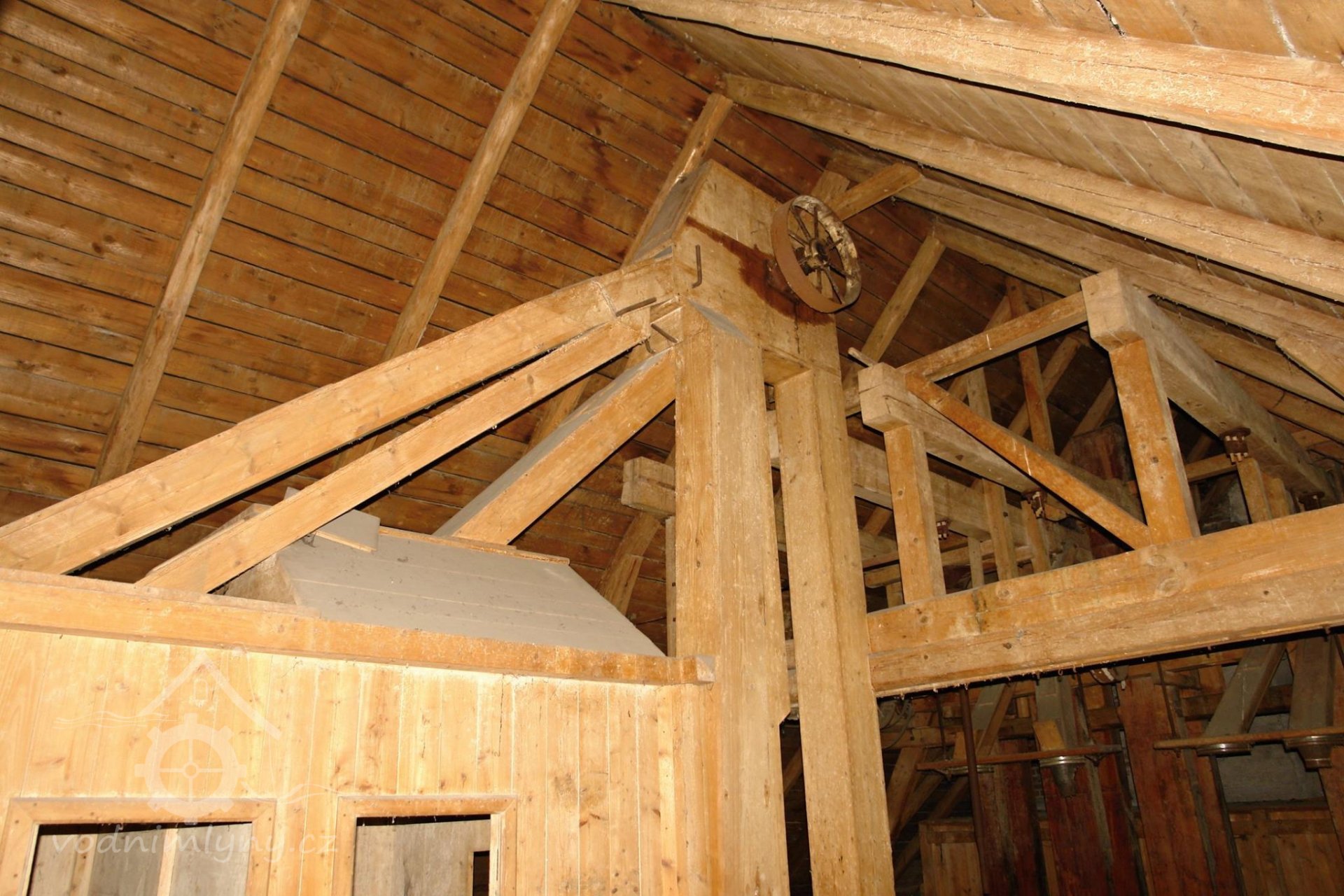 transmise, řemenice, převody v podkroví, 01.10.2015, © Radek, (Prvky na obrázku: transmise, řemenice, převody)