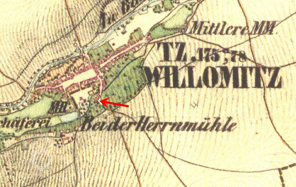 Mlýn je zmíněn v souvislosti s Vilémem Vojtěchem z Doupova, který se zapojil do stavovského povstání a zemřel roku 1621, navíc byl odsouzen ke ztrátě 1/3 majetku. Přišel tak mimo jiné i o statek Vilémov s tvrzí a městečkem, pivovarem, mlýnem, pilou, lesy a rybníky. Panství Vilémov pak roku 1623 koupil bohatý Jan Zdeněk Vratislav hrabě z Mitrovic. Po něm panství zdědila dcera Alžběta Anna Františka.