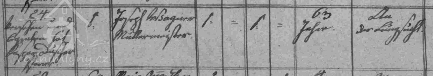 1796 zemřel na tuberkulózu ml. mistr Josef Wagner ve věku 63 let.